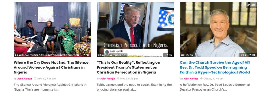 On my first day in the program, I started a reflective blog called Practical Theology in Motion, which serves as my open journal and a place to explore new ideas. Each week, I write about what I am learning, unlearning, and relearning as I grow. Writing feels like both a prayer and a mirror, helping me see how God is quietly shaping me through study, community, and service.